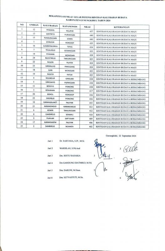 - Gelar Potensi Rintisan Kalurahan Budaya, Kalurahan Ngestirejo mendapat Peringkat 8